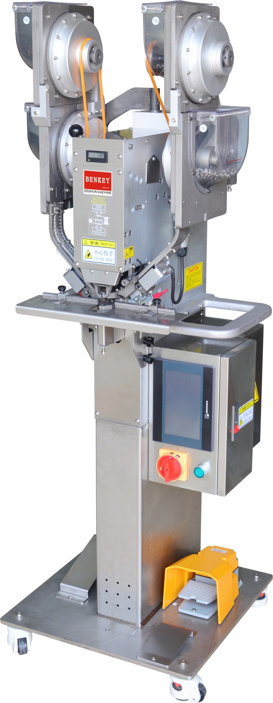 把鈕扣放進(jìn)對應(yīng)的4個(gè)料斗,開機(jī)會自動(dòng)轉(zhuǎn)動(dòng)料斗,自動(dòng)把鈕扣排滿軌道,自動(dòng)把鈕扣送到上下模具,伺服電機(jī)驅(qū)動(dòng),只要踝下腳開關(guān)便可裝訂自如;簡單易用。上下模具對向運(yùn)動(dòng)穿透力好。更換配件可以裝訂其它鈕扣